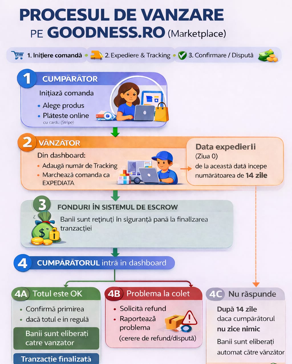 Alegem cu atentie vanzatorii de pe platforma, ne asiguram ca plata este facuta in siguranta.